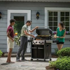 Fuel Type: Propane (LP) – designed for use with 20lb tank – not included.Assembled: 45.5 in. Height 24.0 in. Width 57.0 in. Length. Grill Weight: 153.0 lbs. Cooking Surface: 17.48 in. Width, 25.67 in. Length