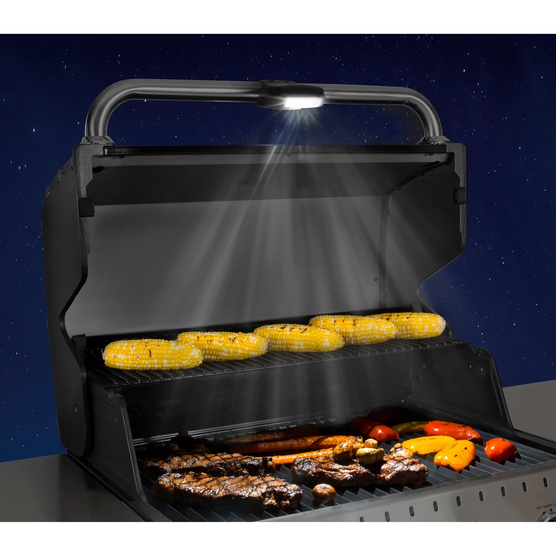 Attaches easily to the handle of any Broil King grill with a flexible elastomer strap. COB light strip, weather resistant body, left or right-handed operation. Batteries not included. May fit other grill models.