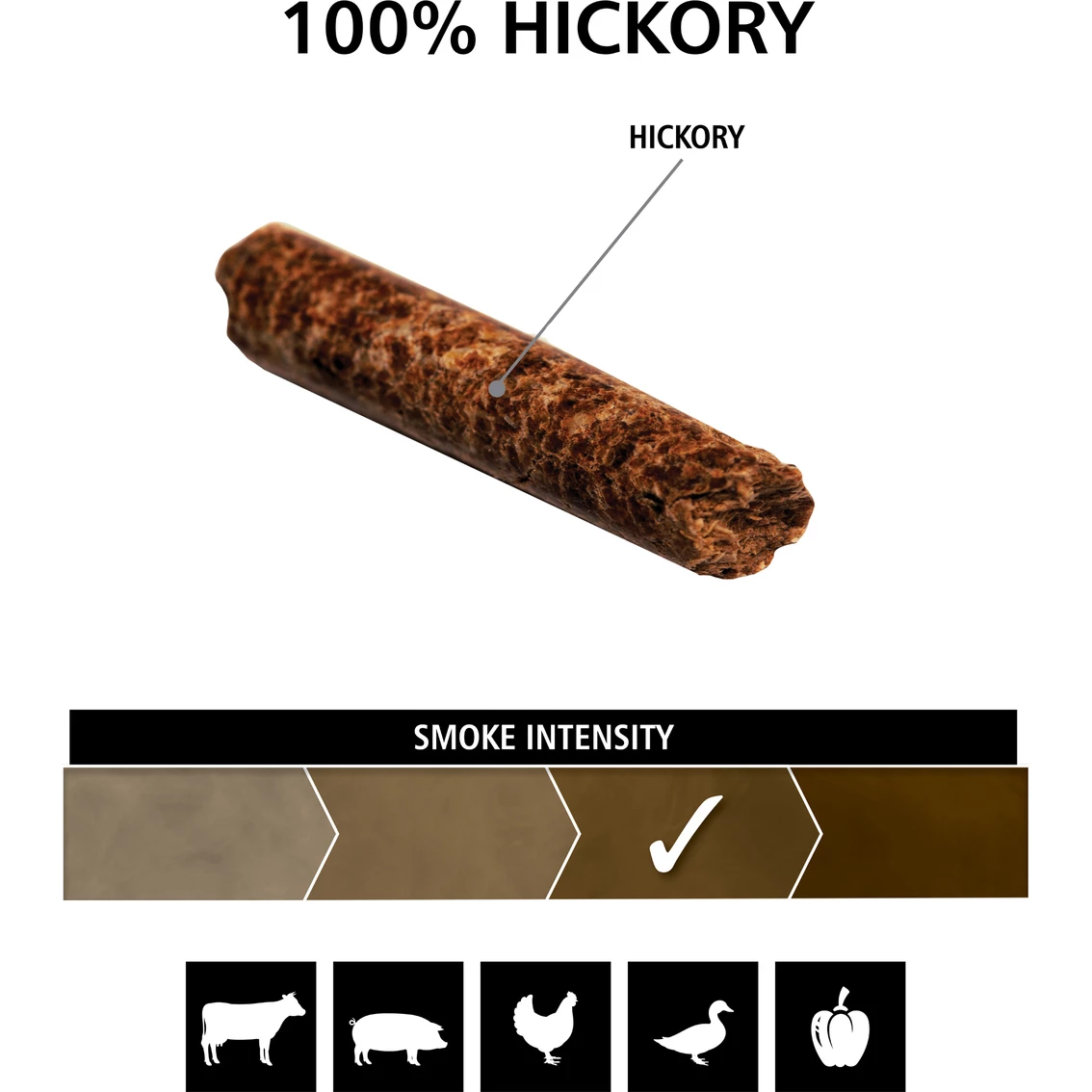 The most iconic flavor. Hickory offers intense smoke taste and is often associated with bacon or smoked ham flavors. 100% natural with no fillers, binders or additives. 20-lb (9 kg) resealable bag. Broil King pellets are 100% natural and contain only premium wood with no fillers, oil additives, or binding agents. Available in a variety of blends, these premium pellets offer optimal cooking performance and great flavor. Our source woods are mixed before pelletizing, ensuring that each pellet contains the intended blend. This method allows for more repeatable cooking performance with a consistent burn and smoke flavor.