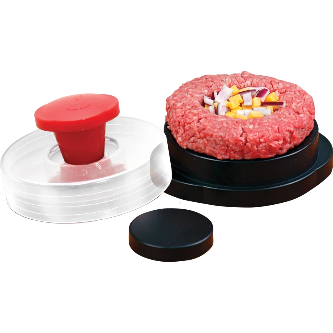 The Char-Broil Perfect Hamburger Press makes 3 sizes of hamburger patties. The insert allows you to stuff your burgers with a variety of ingredients. The Perfect Hamburger Press is perfect for 1/4, 1/3 and 1/2 pound burger patties. Model: 1234.