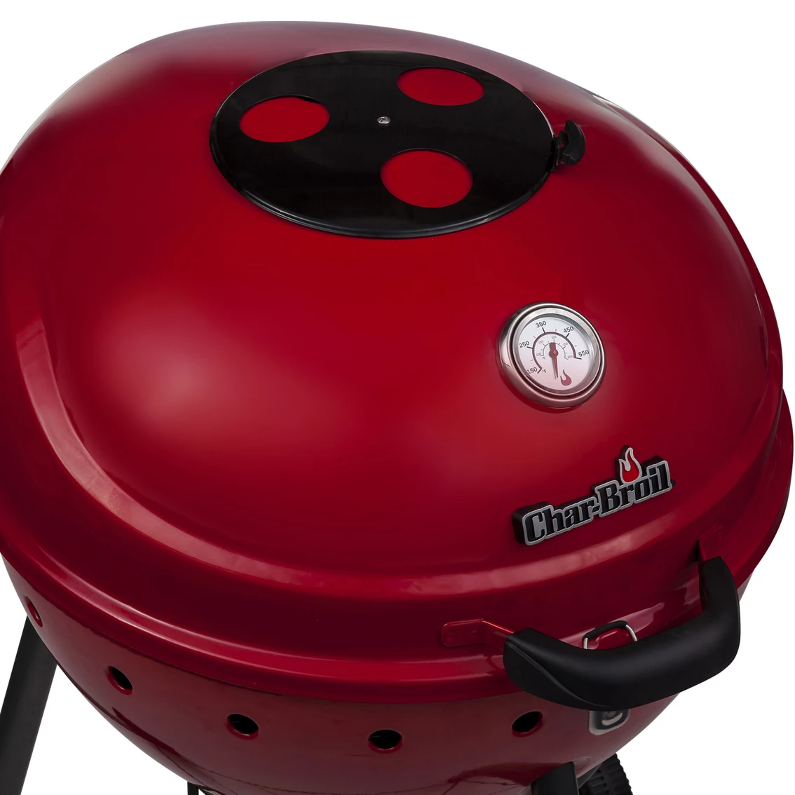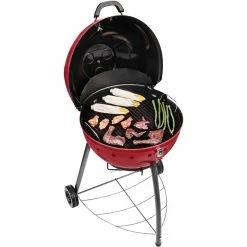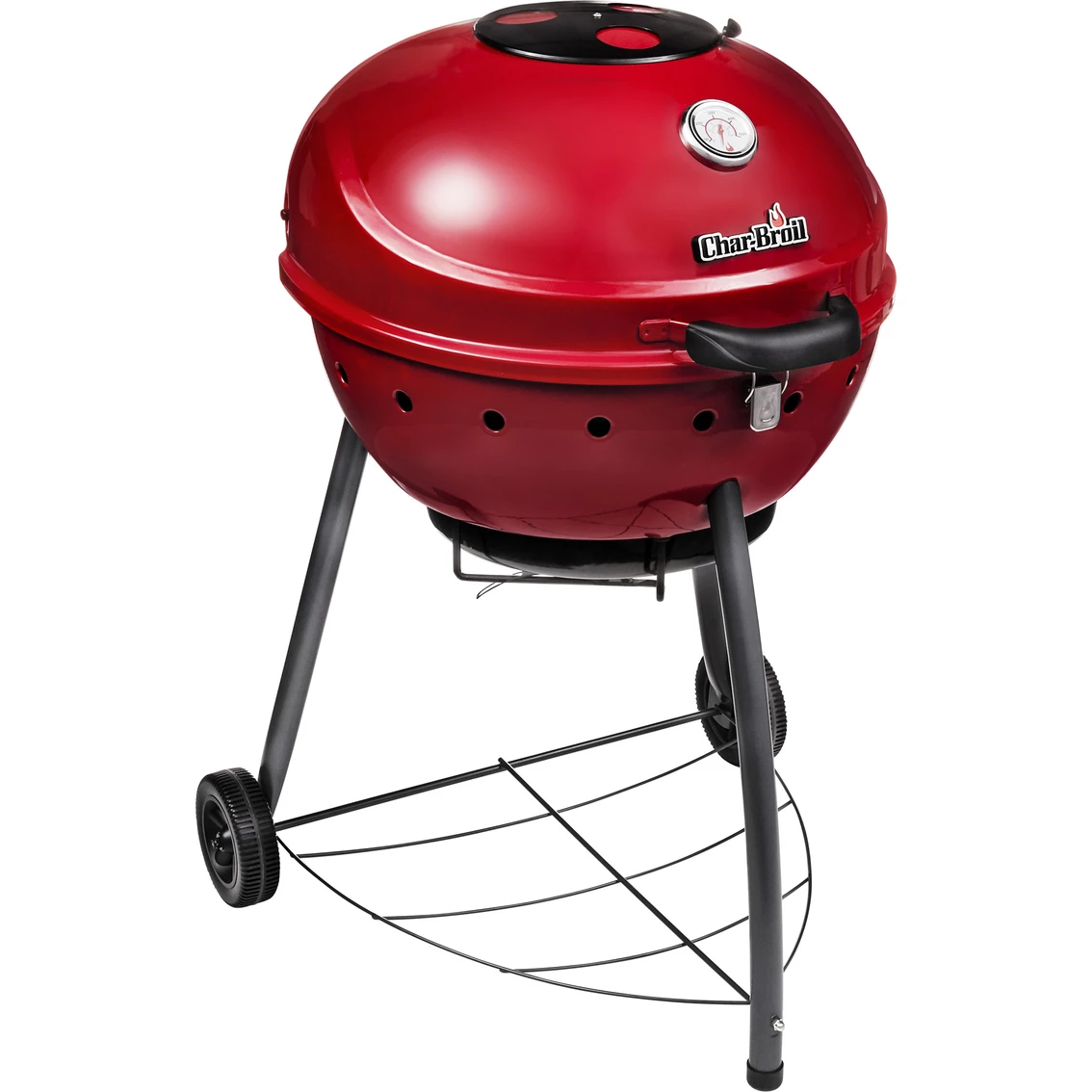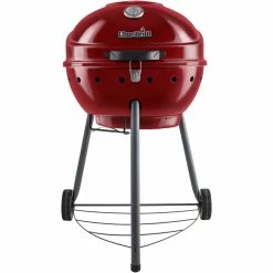 This Char-Broil Red Kettleman Charcoal Grill gives you everything you need for a traditional grilling experience without the mess. Porcelain coated wire grates are easy to clean. The stylish red finish looks great on any patio. Model: 17302067.