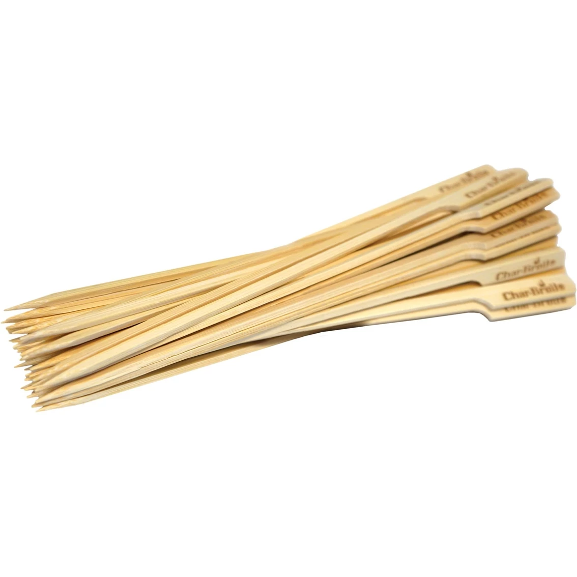 Char-Broil natural bamboo skewers have a square design which keeps food secure. The container tube makes storage easy. Model: 1735.