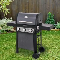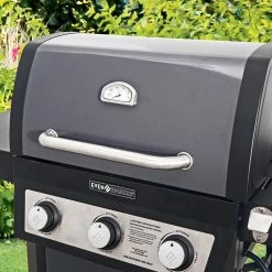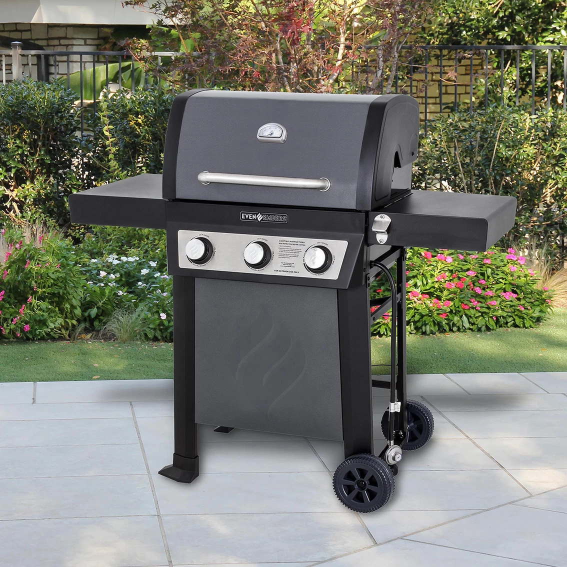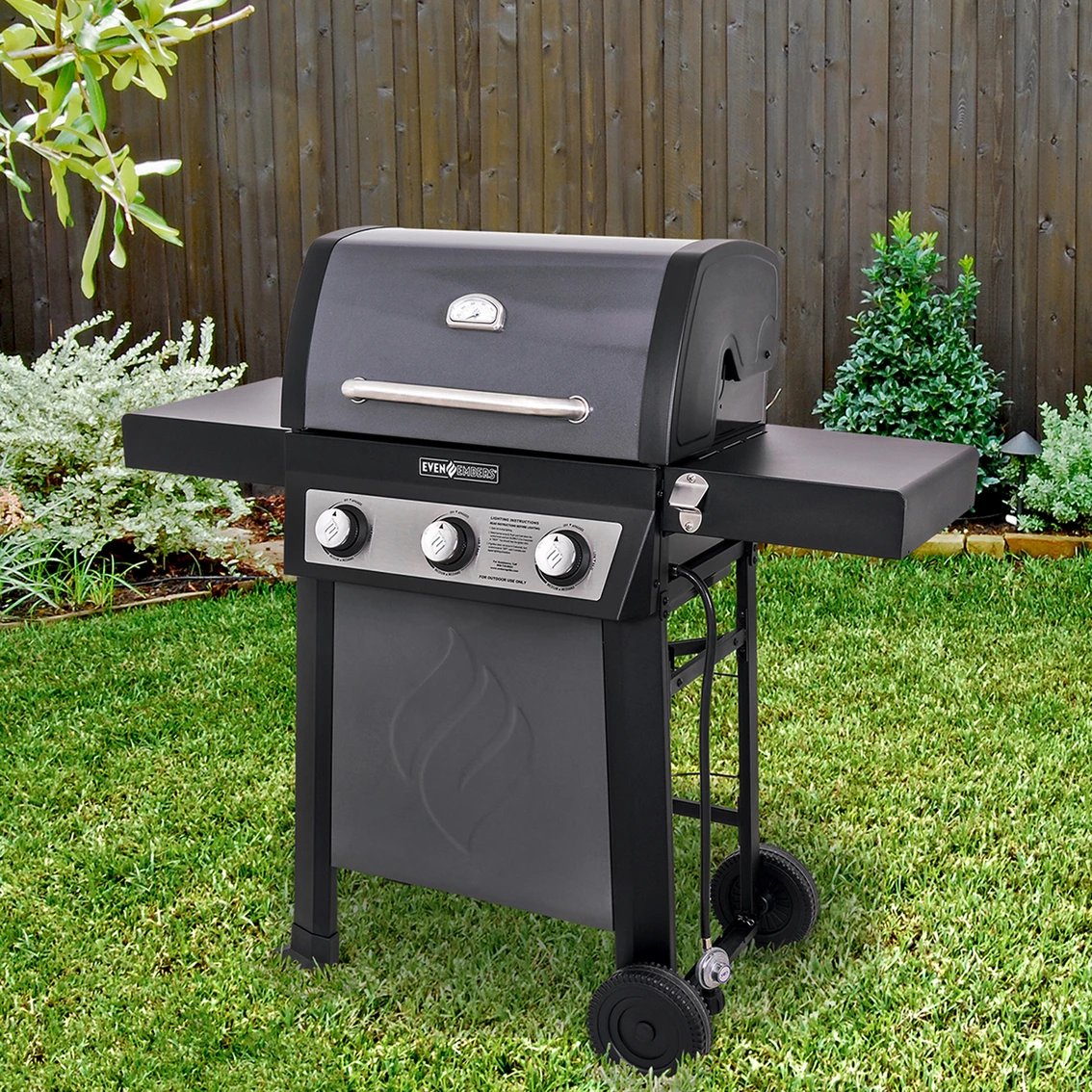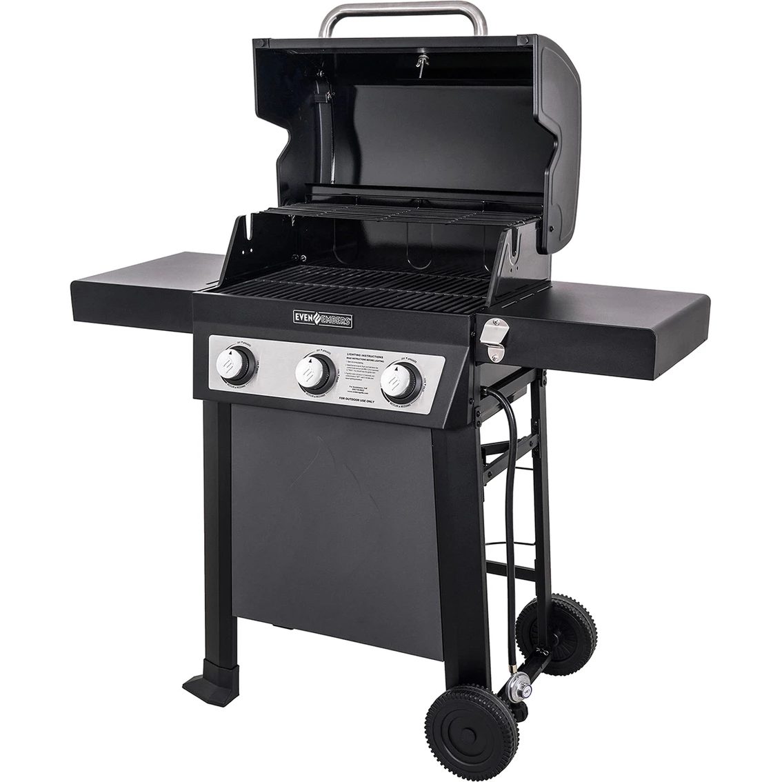 Even Embers 3 Burner Gas Grill. Experience even, consistent cooking on the Even Embers Three-Burner Gas Grill. The porcelain-coated cast-iron cooking grates and stainless-steel heat tents help vaporize foods natural juices to add flavor to your food. This grill is equipped with an easy-to-read temperature gauge, convenient bottle opener, and 542 square inches of cooking space ready for your next backyard gathering.
