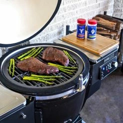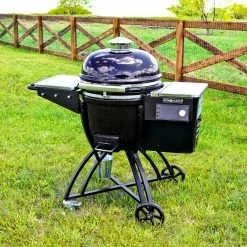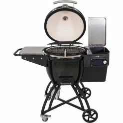 Experience the ease of pellet grilling and the appearance of a traditional ceramic egg grill. The Even Embers Pellet Fueled Ceramic Egg offers a spacious 441 square inches of cooking space on porcelain-coated cast iron cooking grates designed with even cooking in mind. Excellence is just steps away from your back door with the ability to smoke, grill, and sear all your favorite meals. Grill confidently with an LCD digital Bluetooth-enabled controller. The meat probe read-outs enable you to finish every meal with perfection. After enjoying your delicious meal make clean up a breeze with the ash and pellet clean-out system that allows you to clean up as easy as 1-2-3 with a simple pull of a lever. Large stainless steel side tables to easily transfer food, 16-pound pellet hopper capacity. Accessory tool hooks to hang all your favorite tools. Drip bucket for easier grease clean up. Model: EGG1000AS.