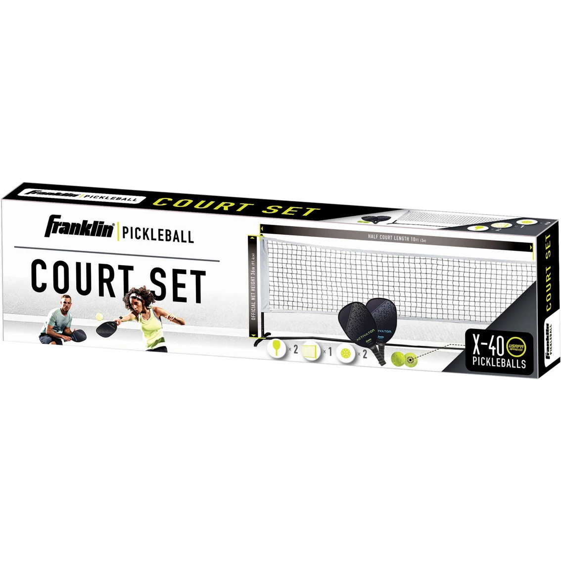 The Franklin sports half court pickleball set is the official starter set of the us open pickleball championships. The pickleball net set includes a 10 ft. wide net (10 ft. x 3 ft.), two wooden usapa approved pickleball paddles and two x-40 usapa approved pickleballs. Its the perfect set to get you started in the sport, can be easily packed up and transported and is easy to assemble. Model: 52920.