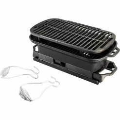 Having the gang over for a backyard BBQ, or gearing up for a tailgate before the game? This rugged, hibachi-style grill can handle the heat. The four-piece design, with a removable grill grate, makes for hassle-free assembly and cleanup, so you can focus on the fun. Dual air vents let you control the heat as you cook. Crafted in America with iron and oil, Lodge’s naturally seasoned cooking surface is ready to help you make memorable moments. Comes with a set of steel Hook & Carry Handles for a secure, safe grip when lifting or maneuvering the grill. Model: LSPROG.