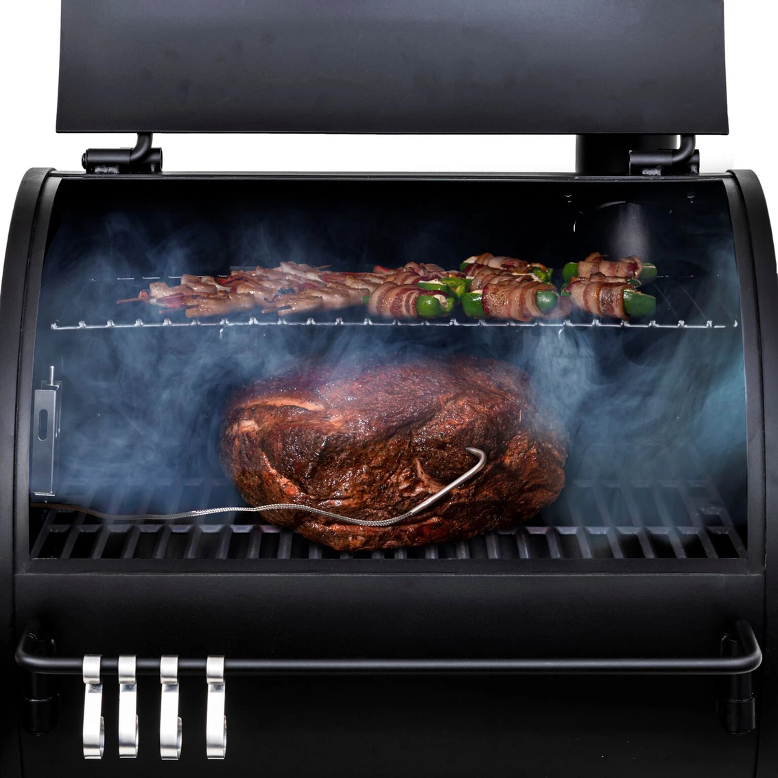 The Oklahoma Joe’s Rider Mini Pellet Smoker gives you everything you need to add that great smoke flavor to any meat. Smoker includes cast iron grates. Model: 20202114.