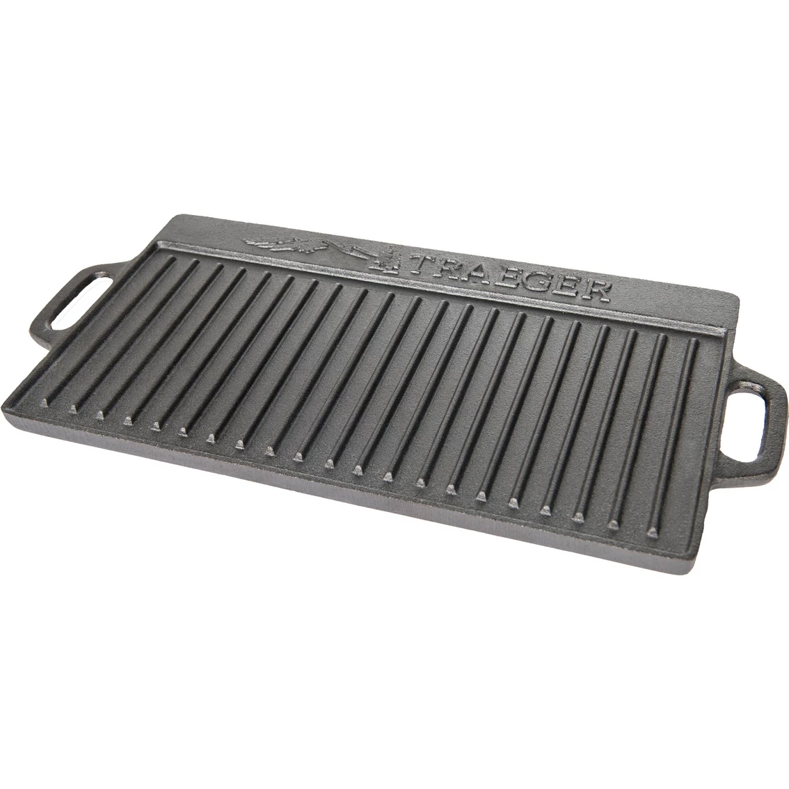 This reversible cast iron griddle from Traeger is pre-seasoned and double-sided and distributes heat evenly for epic grilling experiences. Scramble eggs, make pancakes, or cook up some hashbrowns on the smooth side. Perfectly sear steak or chicken on the ribbed side. Model: BAC382.