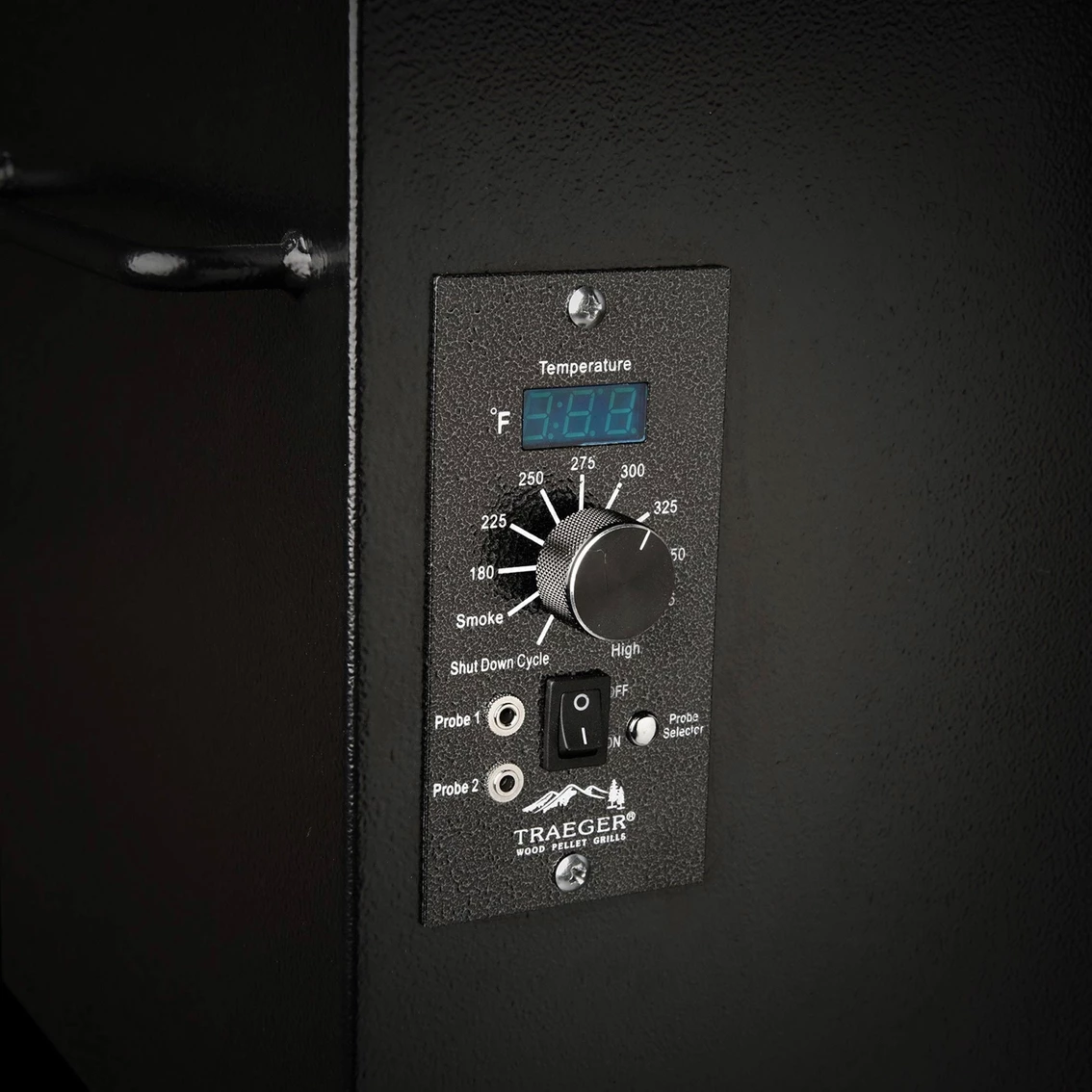 The redefined Traeger Pro 22 Bronze Grill has a linebacker-like sawhorse chassis for stability. Get even weight distribution while hauling your grill with the brawny new side-lift bar. The all-terrain wheels are rock solid and make rolling your grill over pavers, rocks and dirt simple. The new series touts better temperature control, the Digital Pro Controller has Advanced Grilling Logic to keep temps within +/-15 degrees F for guaranteed precision grilling. Create the Traeger taste for family and friends when you take your grilling experience Pro. Model: TFB57PZB.