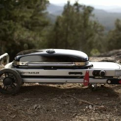 The Weber Traveler Portable Gas Grill is ready when you are, wherever you are. Features a total cooking area of 320 sq. in. and a built-in cart with compact design that sets up and folds down with one hand. The Weber Traveler gas grills are perfect for tailgating, camping or small spaces like apartment balconies. Compact fold for minimal storage space and easily fits in the trunk of a car. Model: 9010001.